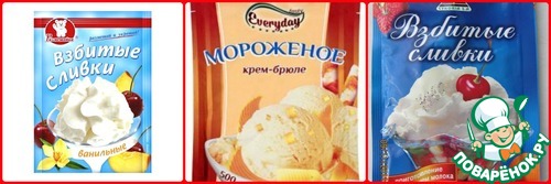 Готовые смеси для приготовления крема или мороженого за 5 минут, пакет разводится 150 или 200 мл холодного молока,