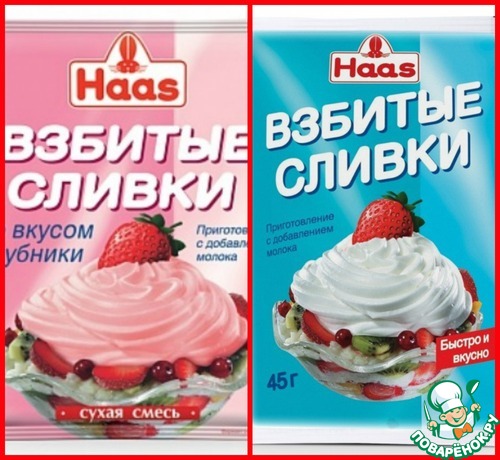 Таким образом, вы можете его заменить аналогами имеющимися в продаже, но обратите внимание СМЕСЬ ДЛЯ ВЗБИВАНИЯ, БЕЗ ВАРКИ, также не забудьте о весе продукта для рецепта, чтоб купить нужную порцию. Или, на крайний случай, можно взять Загуститель для сливок (количество пакетов рассчитывается согласно инструкции).