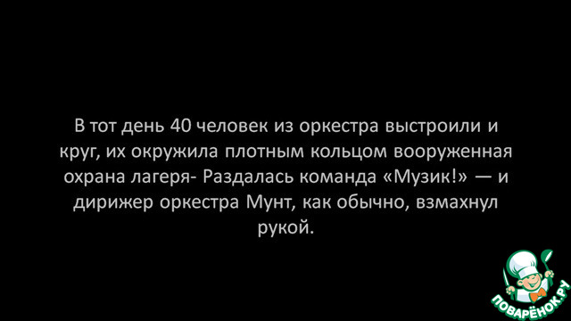 Фото оркестрантов было одним из обвинительных документов на Нюрнбергском процессе. Во время повешения заключенных оркестру приказывали исполнять танго, во время пыток — фокстрот, а иногда вечером оркестрантов заставляли играть под окнами начальника лагеря по несколько часов подряд.
