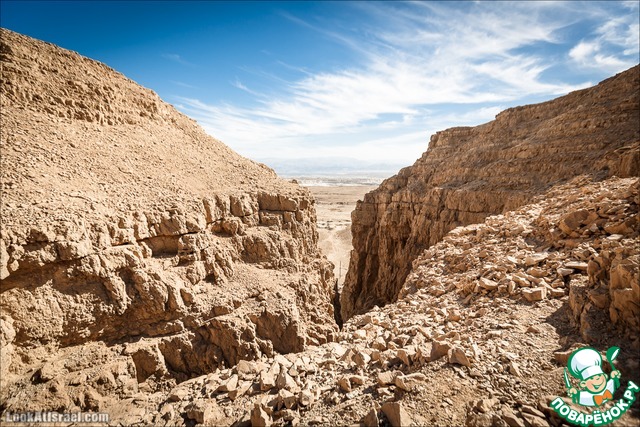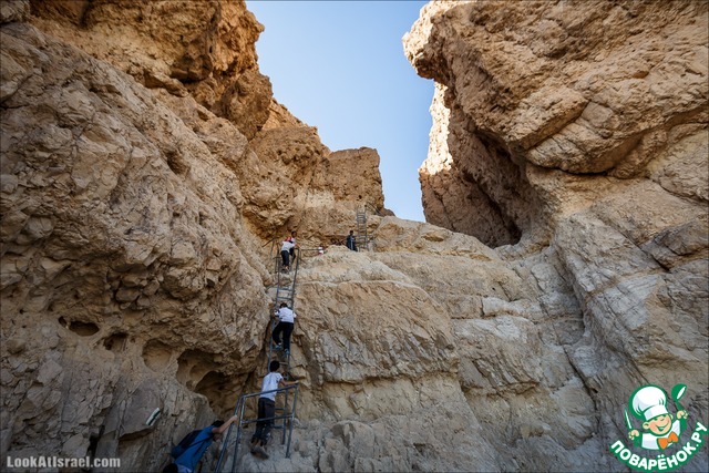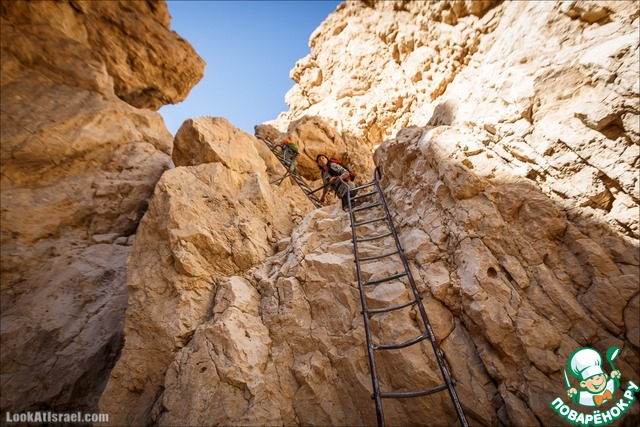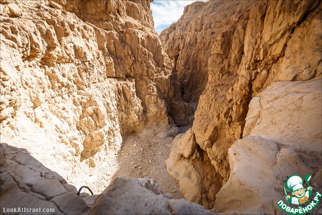 Вышли мы из машин и гуськом спустились по склону вниз (довольно легко, и на этом этапе еще ничто не предвещало драмы). Дело происходило зимой, но никаких дождей уже давно не было и в помине. По плану у нас был тиюль по вади Тамар и прогулка на горных велосипедах. Велосипеды и рюкзаки остались в автобусе, и мы шли с шутками и прибаутками. На группу из 12 человек у нас было 2 инструктора, один остался с великами, а второй героически вел нас в сторону Мертвого моря. Первые 5 секунд - полет нормальный. Затем ущелье начало сужаться и становиться глубже, и это вскоре приняло угрожающий характер. Где-то приходилось спускаться по канату, ну как в школе на физкультуре, один к одному, разница - если упадешь, то костей не соберешь. Где-то мы карабкались снова на эту же верхотуру по скобам, вбитым в скалу (а если плохо ее забили? а если она сейчас вывалится? а если?... ой слава богу, доползла!) Периодически я догоняла инструктора и слезно умоляла позволить мне вернуться назад в автобус, на что он отвечал, что назад идти еще труднее + я могу заблудиться и т. д. Кроме меня, паникеров в тот момент еще не было, но я была только первой ласточкой. В каких-то местах приходилось ползти по-пластунски между и под камнями, больно стукаясь головой, если ее поднимешь. (Вот сейчас я думаю, а у нас что, змей в таких местах не бывает, что ли? тогда эта мысль даже не приходила в голову. Но наверное они в это время года спали? ни одной не видели) Когда проползаешь несколько метров под многотонной глыбой камня... радуешься, что ты худой и можешь быстро ползти