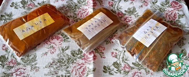 И для души. Обалденные ароматнейшие приправы! Рассыпные! Для плова, хмели-сунели и сухая аджика. Я тут же по горячим следам пошла за говядиной и бараньими ребрышками - завтра у нас будет плов! Вот у мужа моего празник живота наступит!