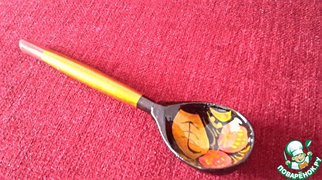 А это какая прелесть - малюсенькая хохломская ложечка, размером с чайную, мечта! Варенье буду ею загребать, от этого оно еще вкуснее станет :