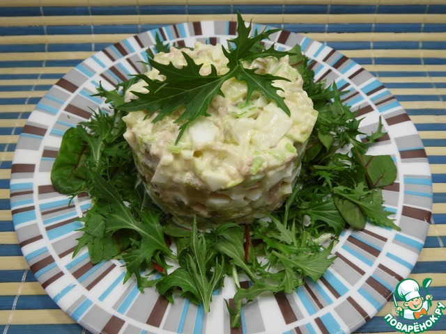 Из изменений: готовила без свежего огурца (просто не нашла его в холодильнике), и перемешала все ингредиенты перед подачей.