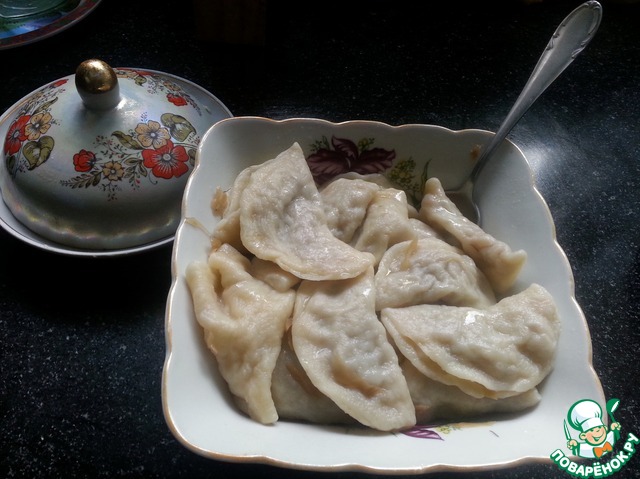 от tvim. Спасибо большое за замечательное тесто! Делается просто, в работе ведет себя чудесно. Готовила уже с вишнями, пельмени и с капустой. На фото с капустой.