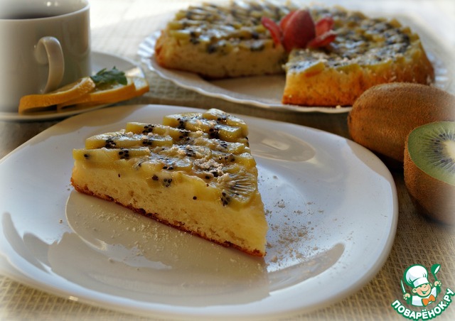 2)«Перевёрнутый пирог с киви на сметане» по рецепту Ольги Демурия https://www.povarenok.ru/recipes/show/119957/