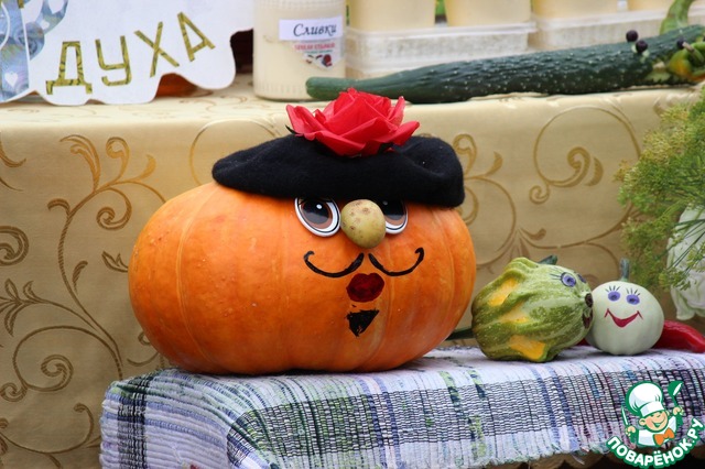 Да, тыковка в берете, очень хорошенькая!!! Это знаешь, день района был. И перед сосновой рощей на большой лужайке много-много палаток с сувенирами, выпечкой, местным хлебом и проч. И много демонстративных палаток с дарами природы. Прелесть, конечно, неописуемая!!!