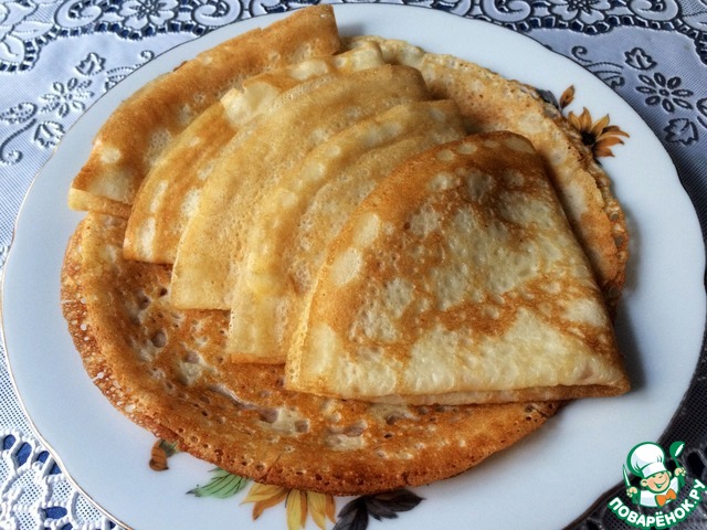 Вкусные, нежные, тоненькие блинчики! С волшебным ароматом ванилина. Вдвое уменьшила пропорции, яиц 3 шт. вбила. Семье понравилось!