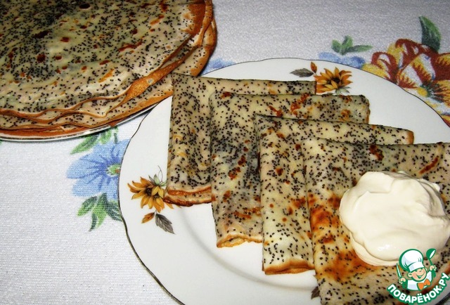 Первый раз пекла блины с маком. Это очень-очень вкусно! Подавала со сметанкой. Макали и кушали, мурлыча от удовольствия!