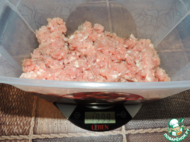 В этот раз я решила взвесить и показать, сколько было и стало. Как видите у меня ровно 2 кг фарша (свиной окорок)