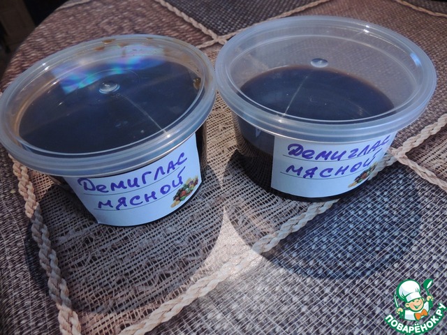 Конечно итог изумляет своим количеством, но уверяю Вас, того количества демигласа, которое у меня получилось в итоге хватит минимум на 3 месяца. Баночки 250 гр. При этом храниться он будет в морозилке, а использоваться везде и всюду. Одна чайная ложка в соус, или одна столовая в суп творит чудеса.