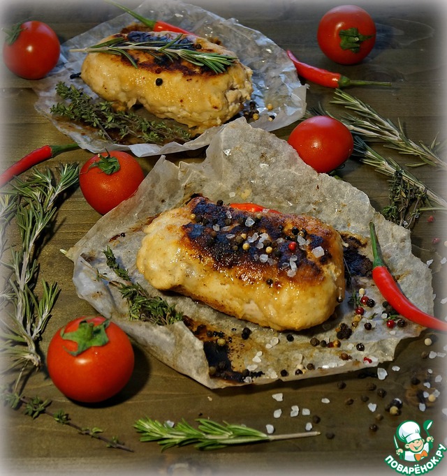 Какая вкусная, сочная и ароматная грудка получилась. Прелесть. Правда вяленой клюквы у меня дома не оказалось, но зато у меня была квашенная капуста с клюквой, вот я ее в грудку и определила. Ирочка, спасибо за рецепт. Отдельное спасибо от моих мужчин. Я им к этой грудке даже по бутылочке пивка купила... ну чтобы уж наверняка, они себя как в Германии почувствовали