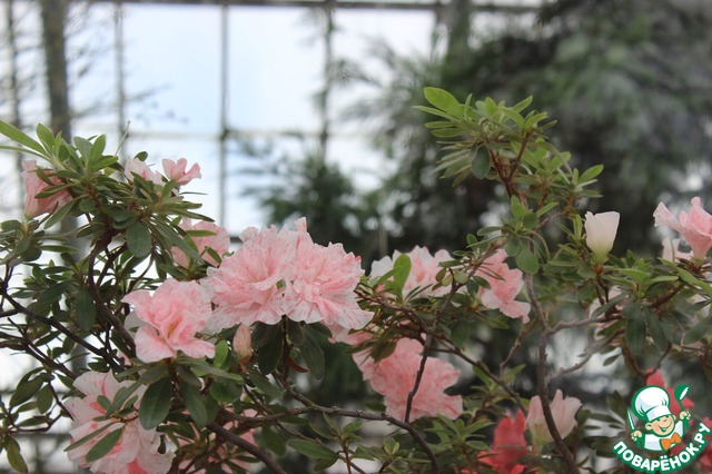 Напоследок ДАВАЙТЕ еще раз ПОЛЮБУЕМСЯ СИРЕНЬЮ и АЗАЛИЕЙ, которая цветет в оранжерее. Некоторые снимки азалии весьма оригинальны, т. к. сделаны через стекло с улицы. Стекла были в инее, а затем оттаяли...