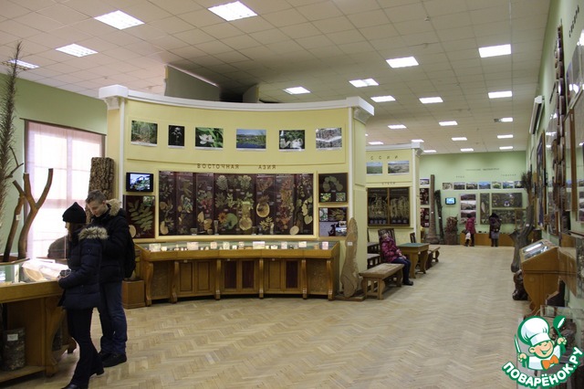 Напротив актового зала - трехэтажный корпус. Внутри на третьем этаже - ботанический музей.
