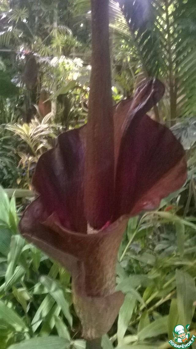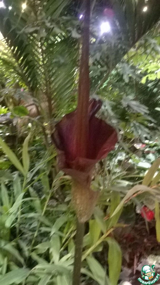 А еще, расцвела такая диковина:В последний день зимы в Ботаническом саду МГУ «Аптекарский огород» зацвел Аморфофаллус коньяк, известный также как Трупный цветок или Язык дьявола – многолетнее травянистое растение родом из Восточной Азии, отличающееся сильным запахом гнилого мяса и разлагающейся плоти. Ежегодное цветение Языка дьявола в ботаническом саду, шутя, называют «Фестивалем мяса».