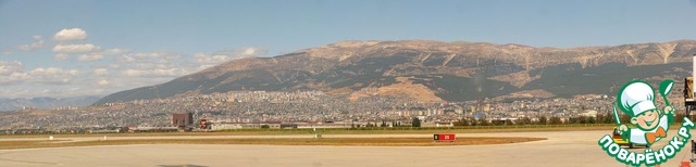 Панорама. Вид на город и гору Ахир Даг из аэропорта KCM. Кархаманмараш, Турция