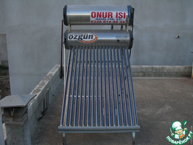 Система солнечного нагрева воды на крыше. Нурдаги, Турция