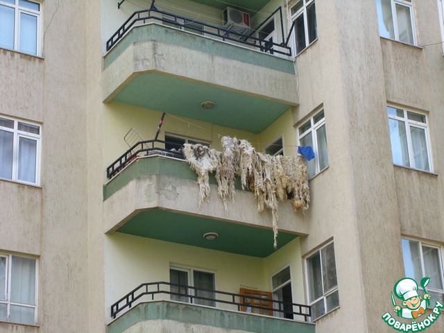 Баранья шкура на балконе жилого дома. Кархаманмараш, Турция