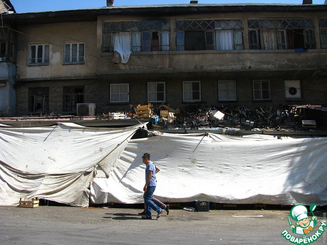 Закрытый от солнца попонами фруктовый ряд. Кархаманмараш, Турция