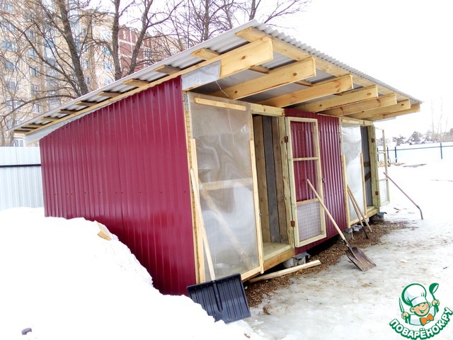 внутри устанавливаем сборные будки (их можно разбирать каркас плюс вставляются доски) утепляем, обшиваем.. ой-это ветошь для портянок. выдали в воинской части, когда меня увольняли. теплая ткань... насыпаем соломы.. домик готов!