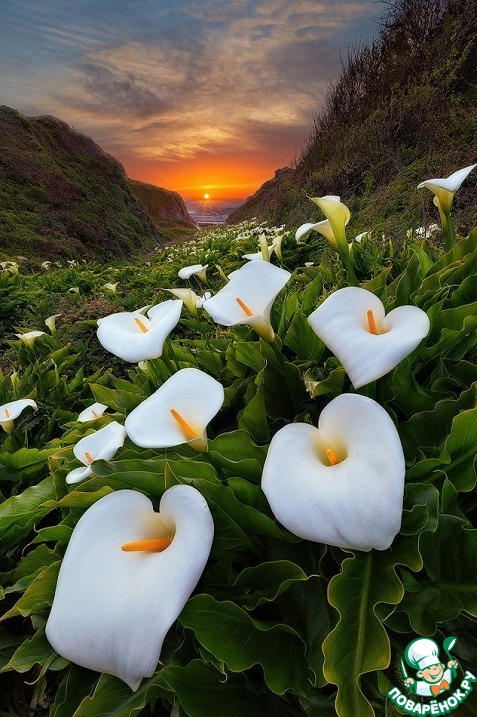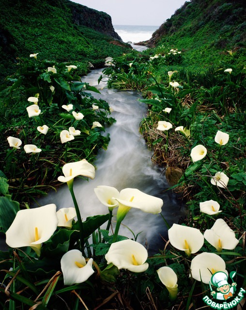 Каждой весной на побережье Тихого океана в регионе Биг-Сур, Калифорния, среди богатой прибрежной растительности расцветает Долина диких калл (Calla Lily Valley).