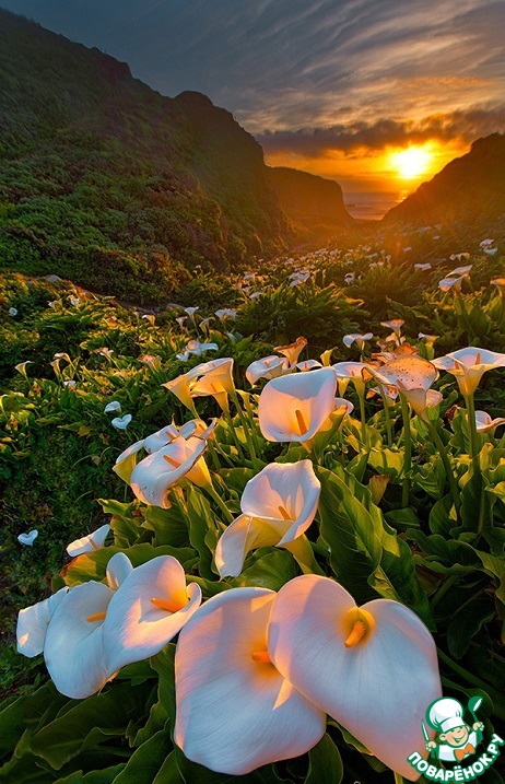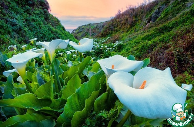 Поэтому я предлагаю вам совершить небольшую виртуальную прогулку в те места, где март бывает теплым, ярким и дарит самые настоящие сокровища. И путешествие это - в Долину дикорастущих белоснежных калл в Калифорнии, США.