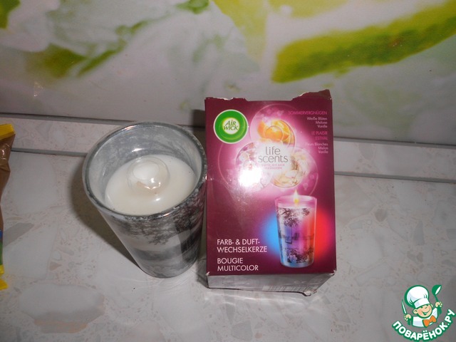 И самое интересное, ароматическая свеча в стакане Air Wick, мультиколор, нереально вкусный аромат, уже попробовали зажечь, даже при подносе зажженной спички она уже меняет цвет, при горении цвет меняется, смотрите: