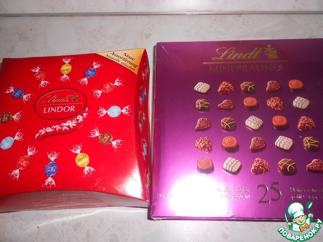 Конфеты в коробках-мини-пралине, пока ещё не открыли, в нем 5 разных вкусов. В другой коробке -тоже конфеты фирмы Lindt. Таких мы ещё не пробовали...