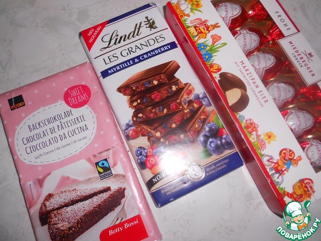Обзор сладостей продолжается-шоколад с клюквой и черникой, большой шоколад 200г ( сказано, что можно использовать для стружек). Коробка марципановых конфет.
