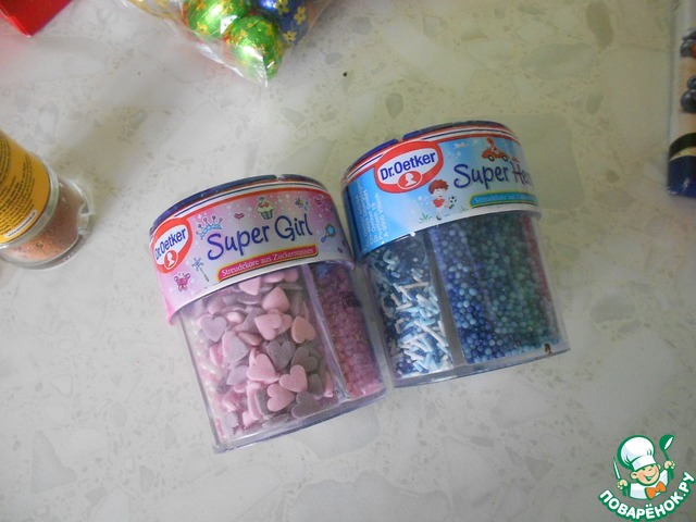 Посыпки Dr Oetker, до чего же красивые, розовые и голубенькие, в каждй упаковке по 4 вида, у нас таких я и не встречала..