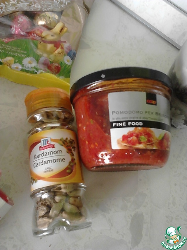 Томатная паста для брускетты и кардамон семенами ( у меня такого не было, только молотый кардамон).