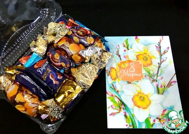 Прекрасная открытка с теплыми пожеланиями и россыпь вкуснейших конфет