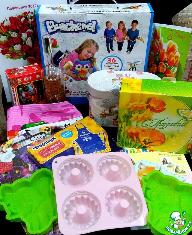 Отличный фартук с надписью "Ты готовишь лучше всех" и два вида силиконовых формочек