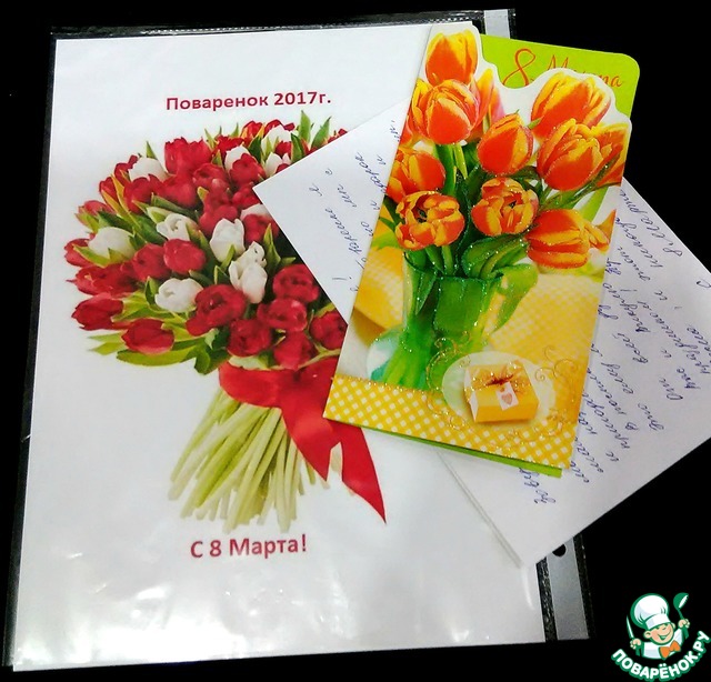 Эта посылочка прилетела ко мне из Тюмени от моей Тюльпанши Наташа (Pingvin72), в рамках акции "Подарок к 8 Марта"