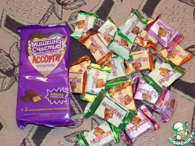 А эту вкуснятину я нашла практически во всех коробочках, что там были. Конфеты не пробовала, но припрятала до конца поста. А вот козиначки я поделила по братски - папе 2 в глазури, остальные МОЁ.