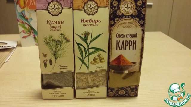Это специи в моднючих упаковках. Зирушечка - одна из любимых моих специй. Куда-то забесила довольно большую баночку с зирой при поездках из сада в дом и обратно. Новую принципиально не покупаю - пусть та найдётся. Люда решила изменить ситуацию к лучшему. Теперь я с зирой. Карри - любимая дочкина приправа. А имбирь - вообще песня!