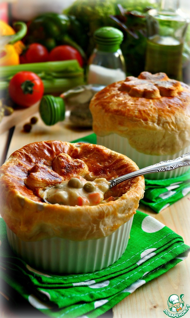 1) «Куриный пирог в горшочке» по рецепту Марии Kipariss https://www.povarenok.ru/recipes/show/72393/#dopphotos