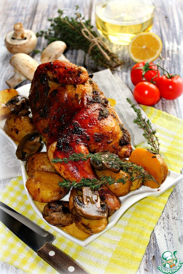 Чудесная, вкуснейшая и ароматнейшая курочка получилась. А картошка с грибами прекрасно дополнили это блюдо. Я уже писала в комменте к блюду, но напишу еще и здесь. Я когда готовила эту курицу, то стоял такой аромат, что я грешным делом подумала что сейчас все соседи моего подъезда сбегутся ко мне на обед.