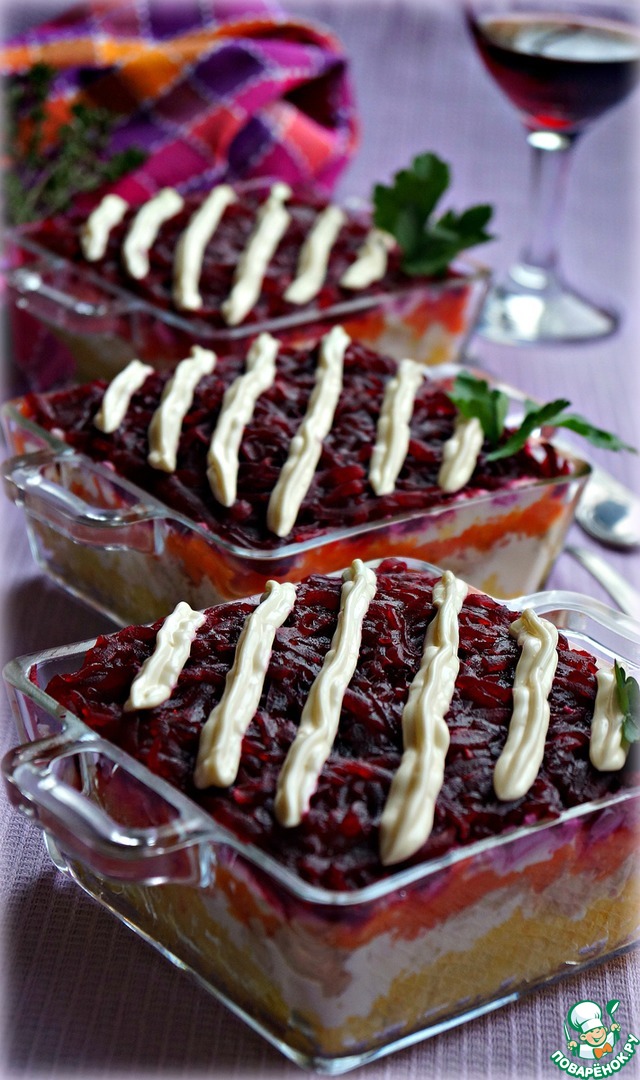 3) «Салат "Печень трески под шубой"» по рецепту Натальи Natalia Ok https://www.povarenok.ru/recipes/show/101403/#dopphotos