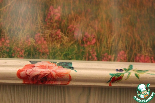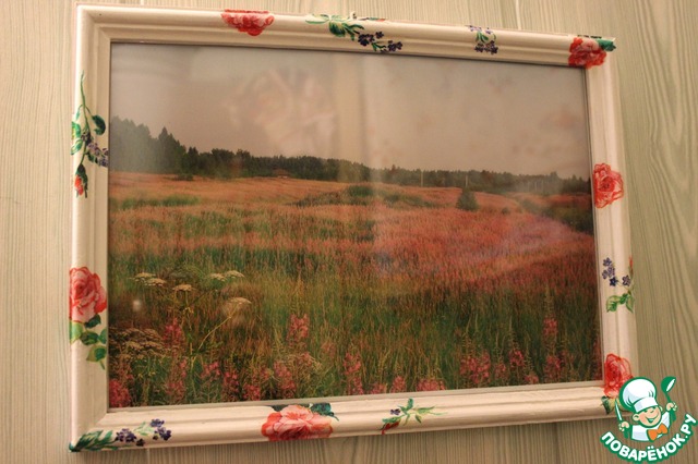Мое творчество в технике декупаж началось вот с такой рамки для фото (осталась на родительской кухне).