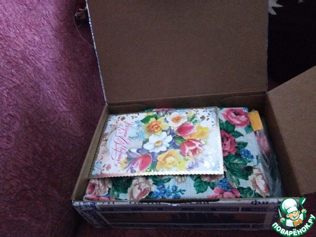 Ну тут конечно не без приключений! замоталась я в начале марта, тут и первая неделя Великого поста, и неурядицы на работе, кое как выкраив время отправила ей свой привет, Иришка же умничка, сделала немного раньше, но "высшие почтовые силы" распорядились иначе, Иринкино поздравление пришло на мое почтовое отделение еще 6 марта, но строгие почтальонных-дел-мастера ни за что не желали в этом признаваться и искать без извещения, но что ж может оно и к лучшему! посылку получила я вечером 9 марта, но насладится ей, мне помещали нечаянные гости!