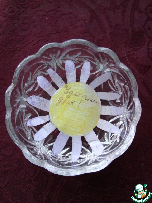 А напоследок чудесный сюрприз от дочки Даши, цветок, который распускается в воде, всё по инструкции, налила воду в вазочку положила бумажный бутончик и он раскрылся, полюбуйтесь дорогие