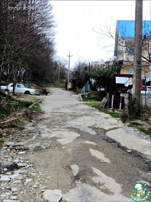Чтобы попасть домой, мне нужно подняться по убитой насмерть дороге вверх. Вот начало подъёма, идём и смотрим по сторонам.