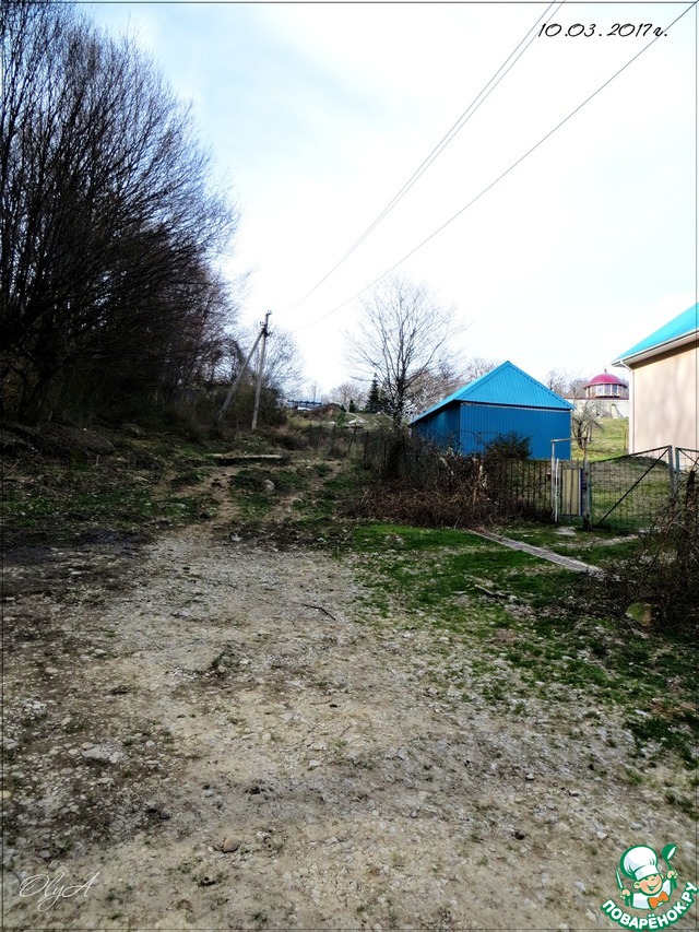 Уже видно забор с калиткой. выше - совсем бездорожье, а когда-то была дорога.