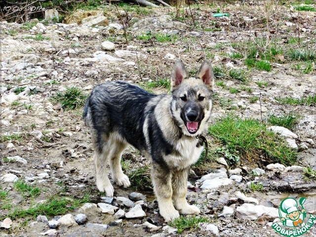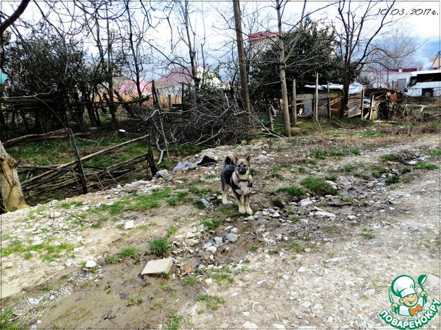 Из-за забора выбежала. явно нами заинтересованная молоденькая овчарка. Милашка просто!
