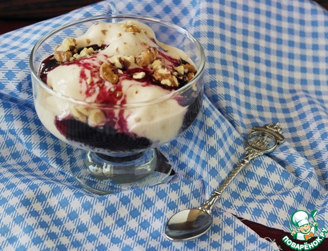 Замороженный банан порезала на кусочки, отправила в чашу блендера. Добавила овсяное молоко и все взбила. Секундное дело! Мороженное получилось наивкуснейшим. Я полила его черничным джемом и посыпала грецкими орехами... Красота!!! Попробуйте и вы... Удачи!
