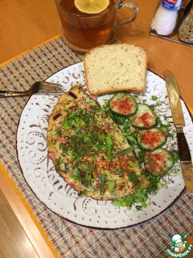 Очень сытный, вкусный омлетик, и добавки можете варьировать по вкусу.