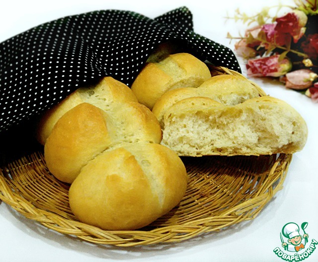 Шикарный хлебушек. Очень нежный. Пекла полпорции, получилось 8 булочек, соединяла по 4. Спасибо за рецепт