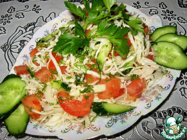 У меня капуста белокочанная, огурчик, помидорчик и зелень. Надо же! Заправка, действительно, придаёт ореховый вкус!!! Просто удивительно! Салат заиграл новыми, чудесными, взрывными, ореховыми нотками! Я в восторге! Буду пользоваться и удивлять гостей!