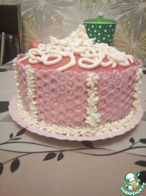 Торт без яиц и масла, бока сделаны из шоколада, трафарет пузырчатая пленка