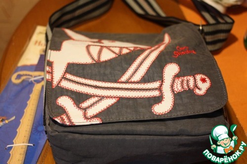 а в этой сумочке целый пиратский набор: кофточка, бандана, карандаши, копилка, резинка, доска и т. д. и т. п. и всё в пиратском стиле